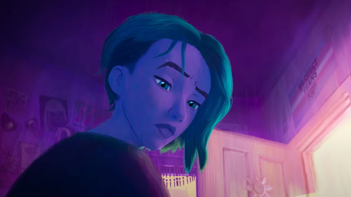 Alasannya karena poster Gwen Stacy dengan tulisan “Protect Trans Kid” yang ada di dalam kamarnya. Kalau kamu nggak fokus menyeluruh nontonnya maka kamu nggak ada sama adanya poster tersebut.