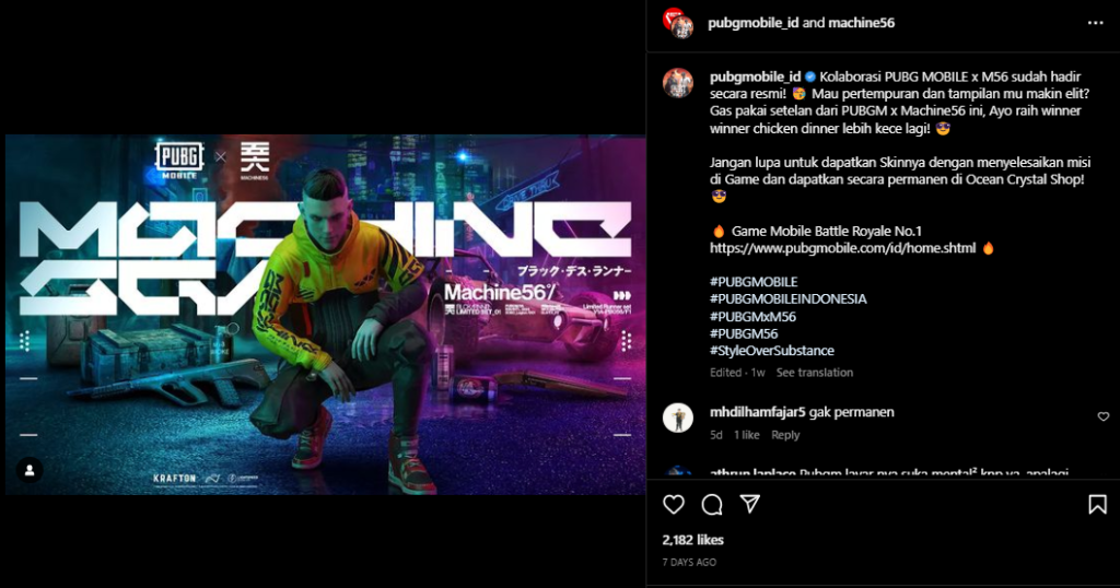 Kerja sama antara M56 dan PUBG MOBILE ini juga menunjukkan pentingnya kolaborasi dalam mengembangkan pemikiran kreatif dan penetrasi ke target market yang baru.
