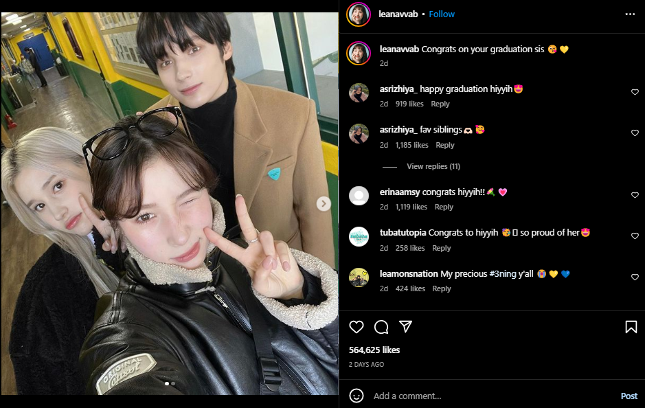 Huening Kai tidak datang sendirian, dia hadir bersama kakak tertuanya, Lea Navvab menghadiri wisuda adik bungsunya, Huening Bahiyyih dari SMA Lila Art High School. Ketiga kakak beradik itu dikabarkan sempat bersekolah di Lila Art High School, tapi beda dengan Bahiyyih, Kai kemudian pindah dan lulus dari Hanlim Art School.