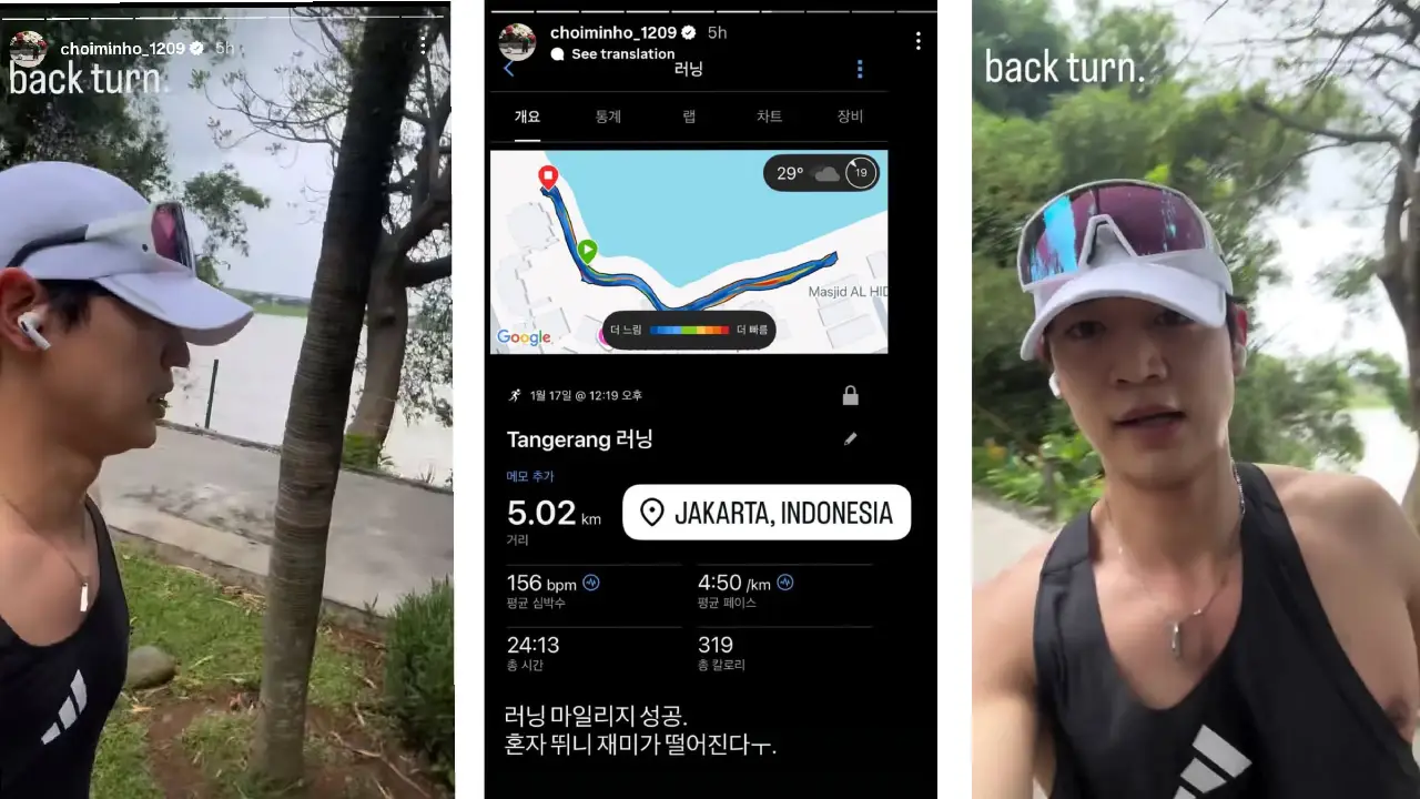 Dalam unggahan tersebut, Minho mencatat waktu 24 menit 13 detik dengan pace rata-rata 4 menit 50 detik per kilometer. Yang membuat penggemar takjub, aktivitas lari ini dilakukan saat suhu Jakarta mencapai sekitar 29 derajat Celsius, kondisi yang dikenal panas dan cukup menantang, terutama bagi pelari.