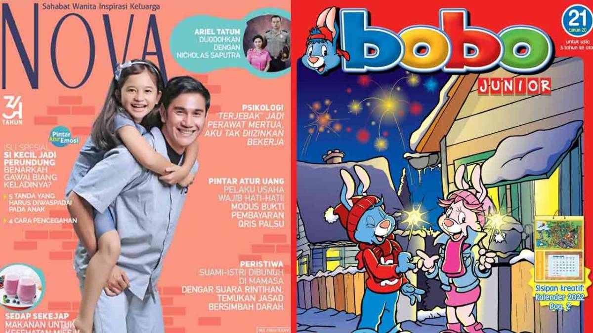 MAJALAH BOBO JUNIOR, MAJALAH NOVA, MAJALAH MOMBI, dan MAJALAH MOMBI SD yang rata-rata berhenti terbit di rilisan terakhir pada 22 Desember 2022 mendatang.