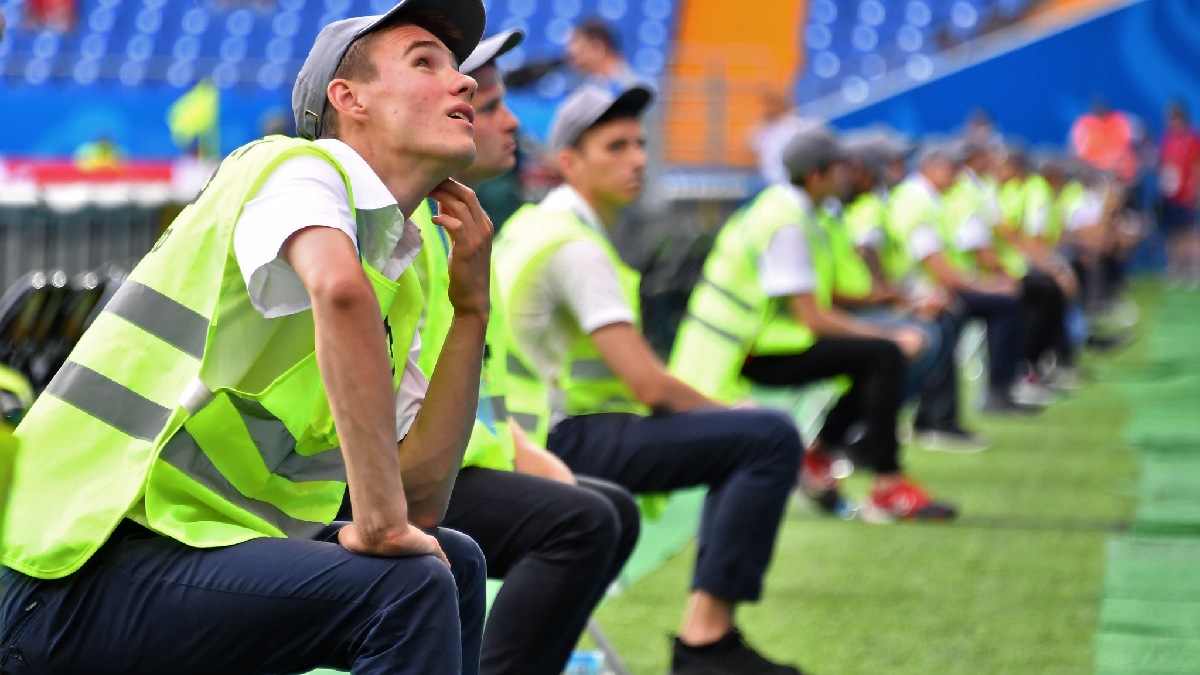 Relawan pria berkulit hitam itu duduk di atas kursi mirip penjaga pantai, ditugaskan untuk mengarahkan fans sepak bola ke stasiun Metro terdekat. Jelas aja relawan satu ini jadi hiburan tersendiri untuk fans yang hadir di Qatar.