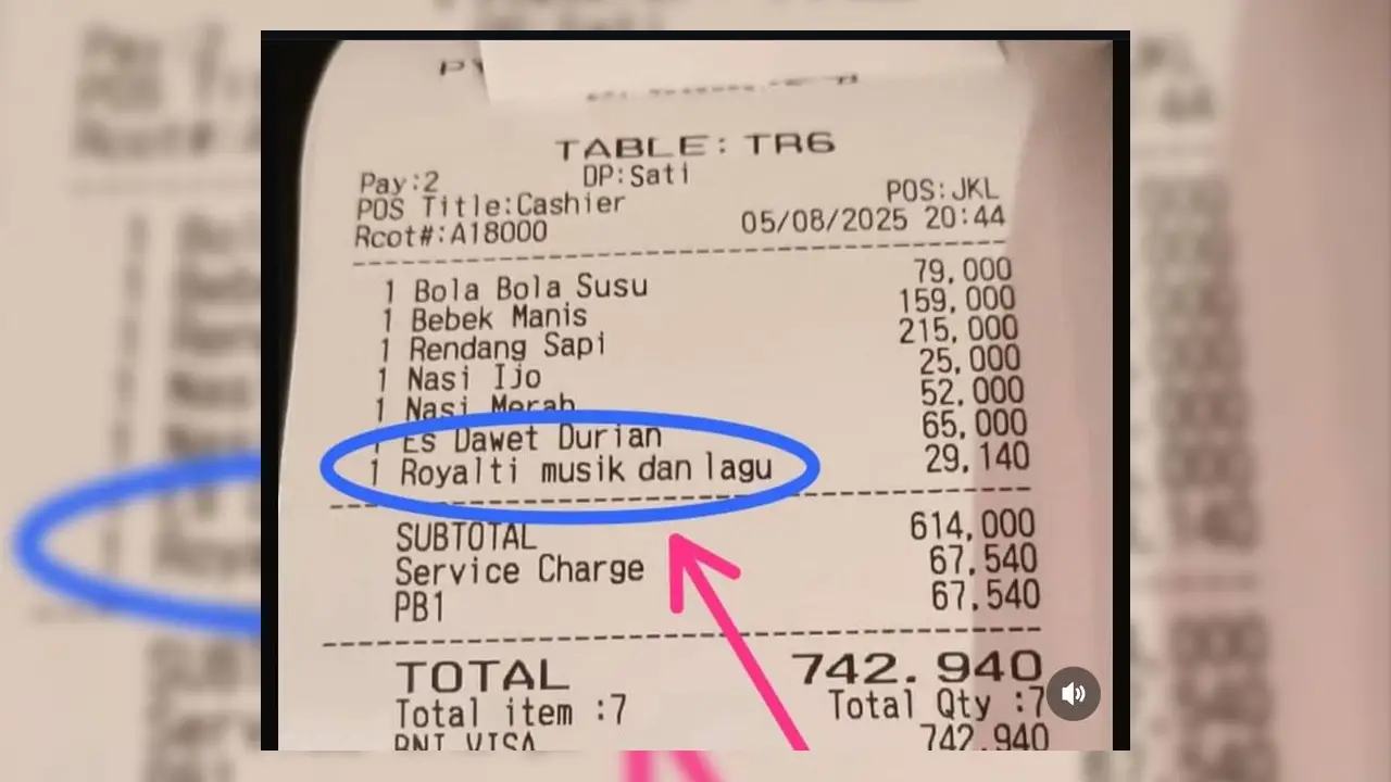 Kiss FM Medan –  Media sosial tengah dihebohkan dengan beredarnya foto struk pembayaran makan di sebuah restoran yang mencantumkan biaya tambahan tidak biasa, yakni royalti musik dan lagu sebesar Rp 29.140. Foto ini memicu perdebatan hangat, terutama di kalangan pelaku usaha Food and Beverage (F&B).